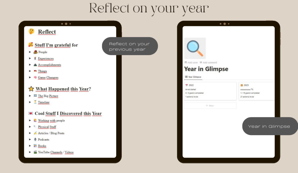 New Year Goals Tracker Notion Template 2023 - Goal Setting Planning for Personal & Business - Habits, Vision Board, Milestones, Tasks